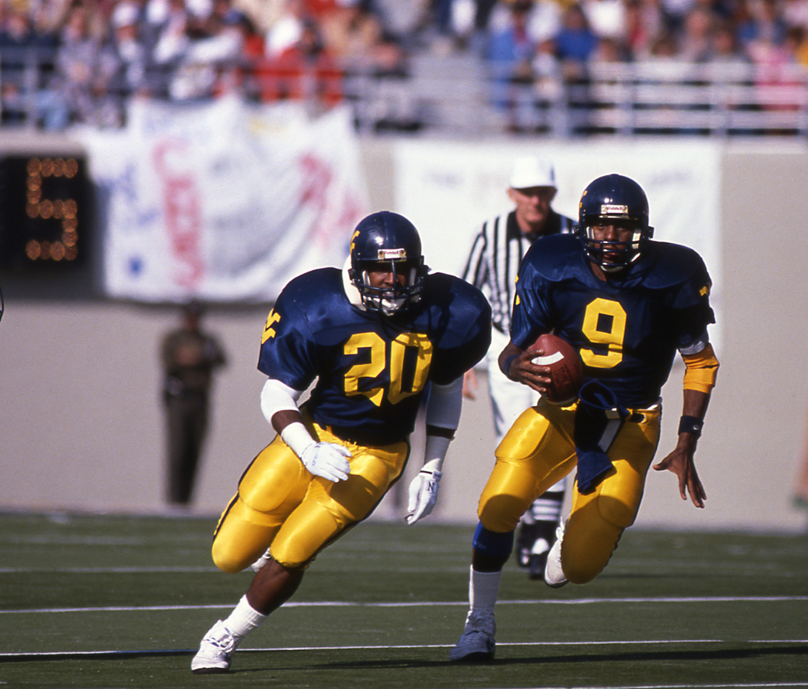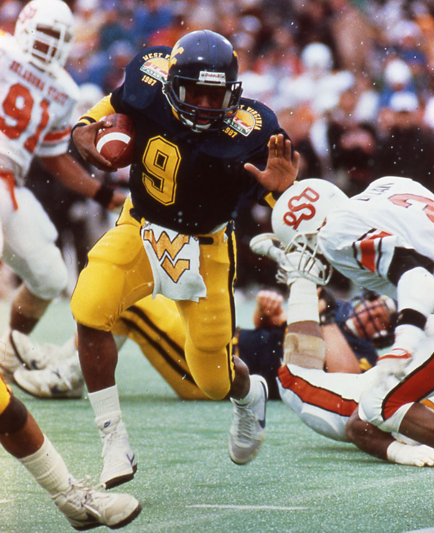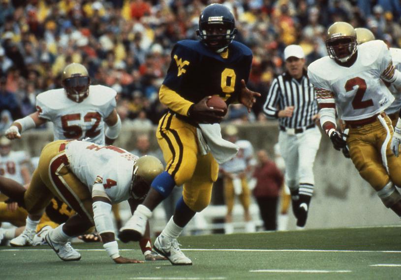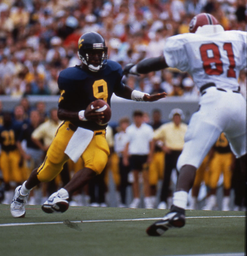 After struggling through the early part of his redshirt freshman season, the elusive signal caller had a breakout game against East Carolina in 1987 and never looked back. He produced 1,200 yards passing and 615 rushing yards in helping WVU to a John Hancock Sun Bowl berth against Oklahoma State.