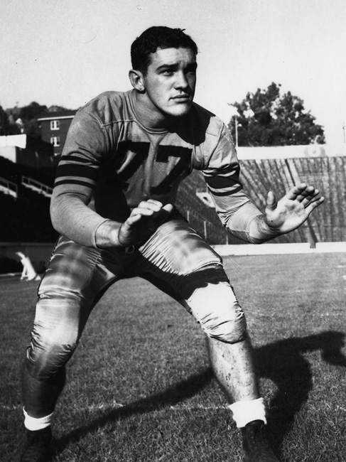 Bruce Bosley earned consensus All-America honors in 1954 for the Mountaineers as a two-way tackle for coach Art "Pappy" Lewis.