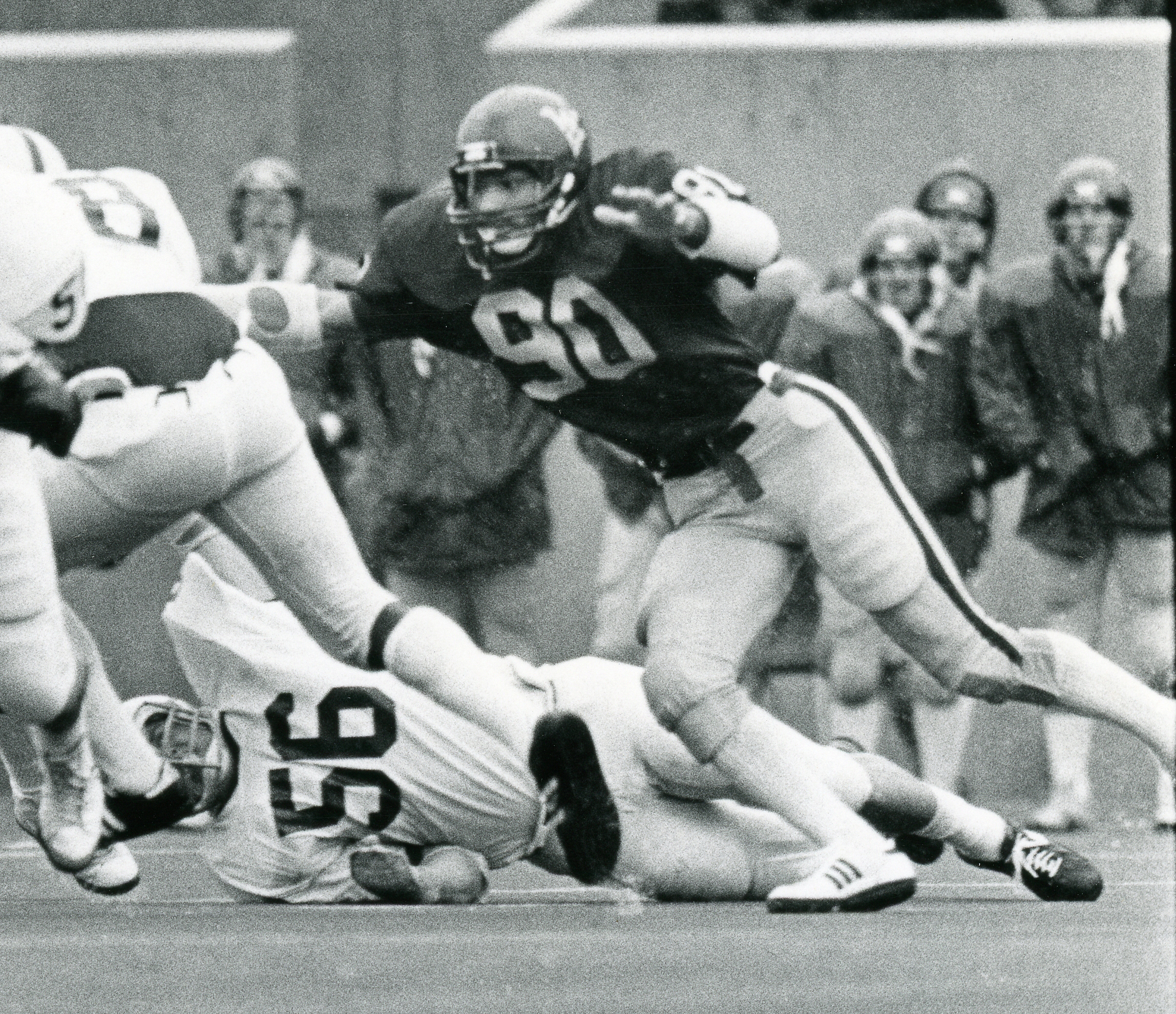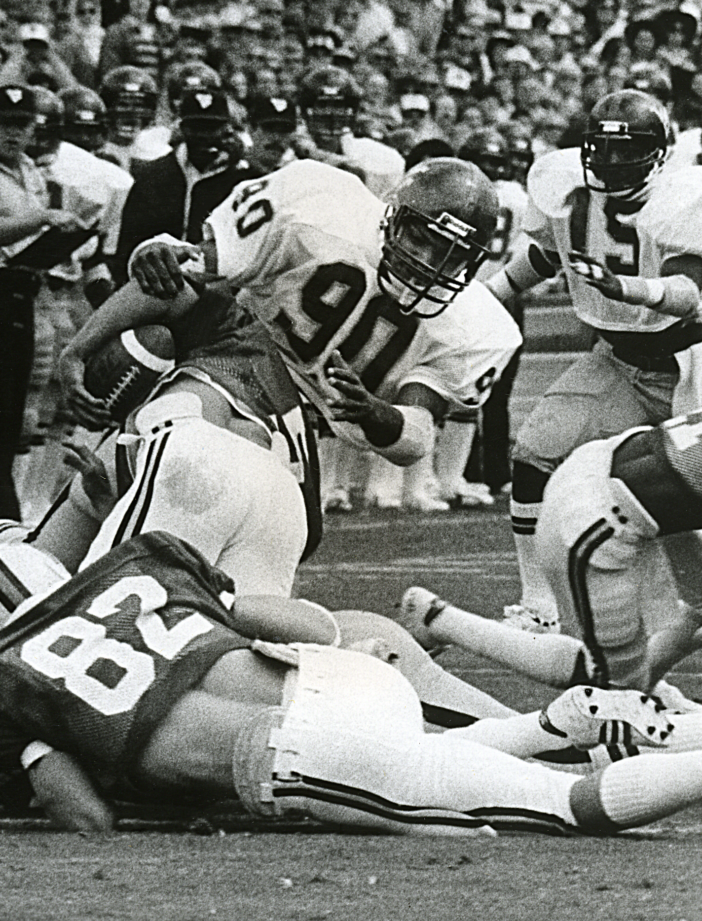 A 1982 consensus All-American, Darryl Talley was one of the most prolific tacklers in Mountaineer and Buffalo Bills history. During his four years in Morgantown, Talley amassed 484 career tackles – the most by any WVU player when his playing career ended. The four-year starting linebacker led West Virginia to the 1981 Peach Bowl and the 1982 Gator Bowl.