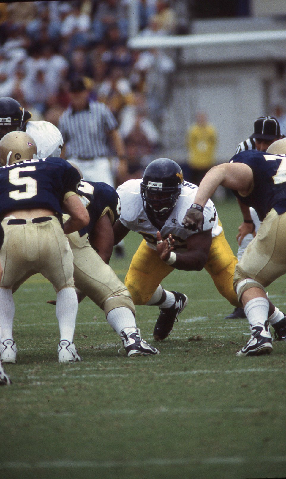 One of the strongest defensive tackles in school history, John Thornton was a four-year starter with 41 consecutive starts from 1995-98.